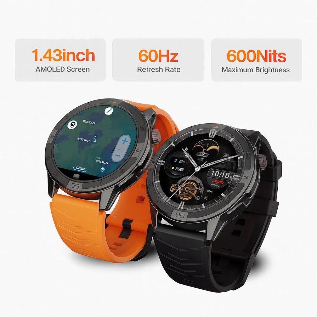 🖥️ Pantalla AMOLED HD de 1.43” (466x466 px, 60 Hz, brillo máximo 600 nits).