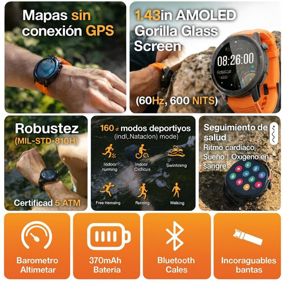 Reloj Inteligente AGM Legion Pro – GPS, AMOLED 1.43”, 5ATM, Multideporte y Llamadas Bluetooth