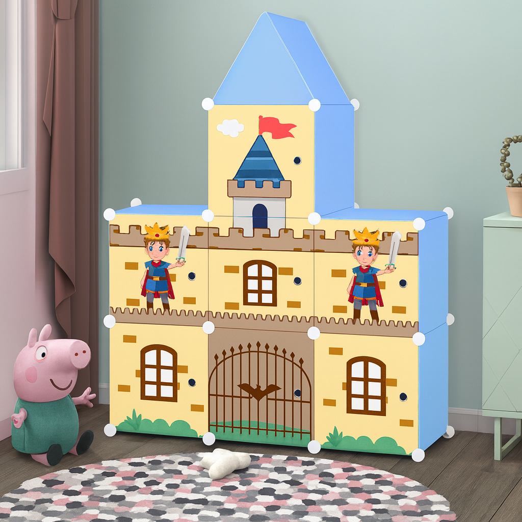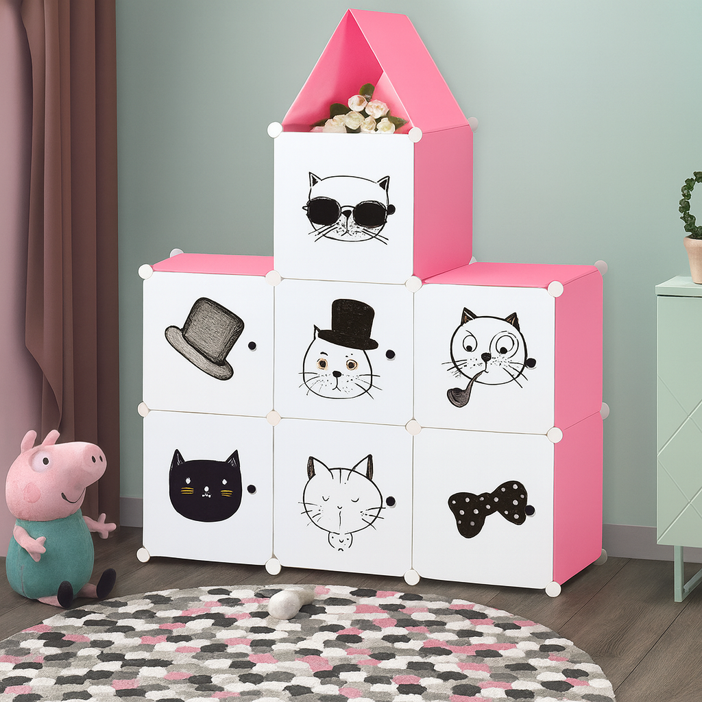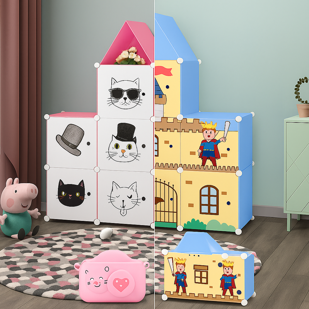 Este armario modular no solo mantiene todo en orden, también enseña a los niños el valor de la organización desde pequeños, en un espacio divertido y seguro.