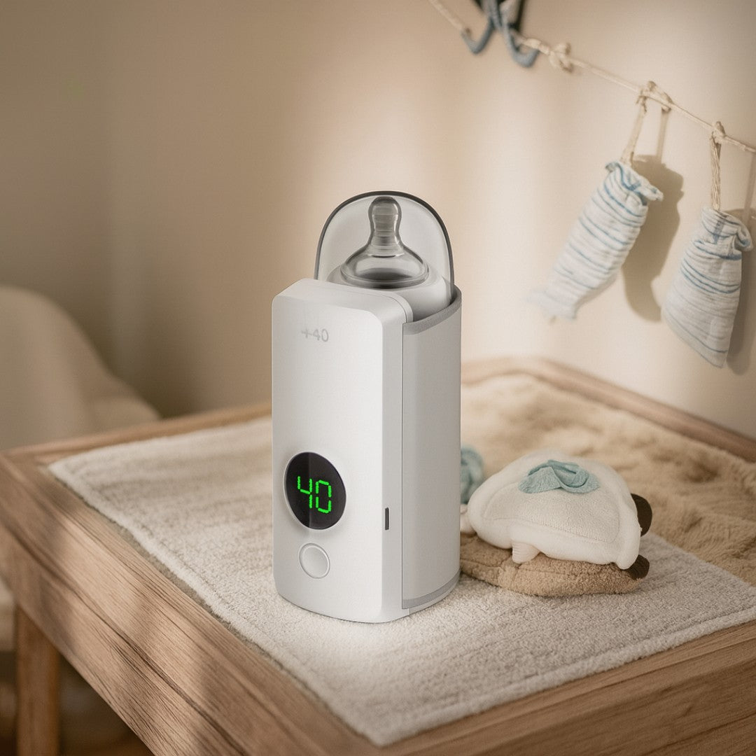 Calienta biberones en minutos con este calentador portátil e inalámbrico. Seguro, práctico y perfecto para viajes o el hogar.