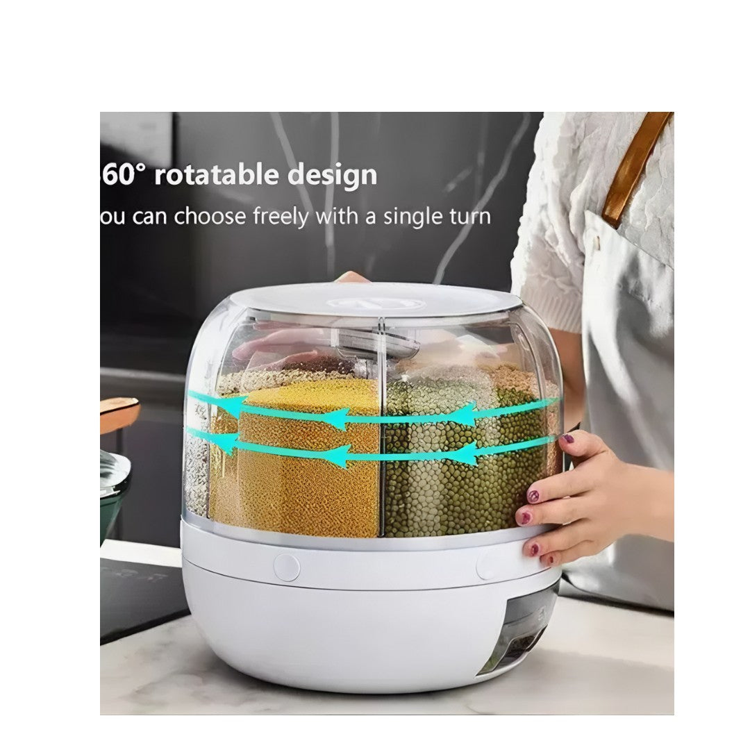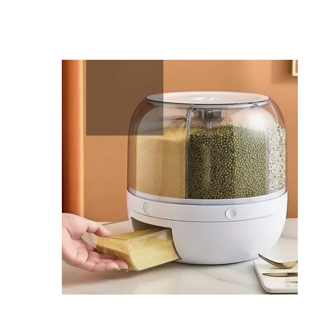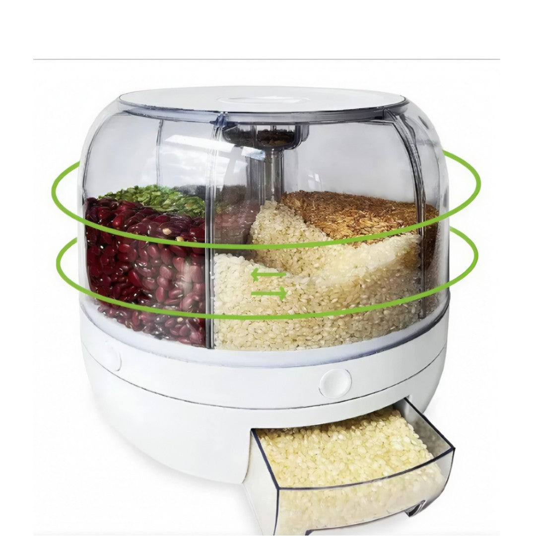 Con este dispensador giratorio hermético, mantendrás tus granos perfectamente organizados, frescos y siempre listos para usar, sin desperdicios ni caos en la cocina.