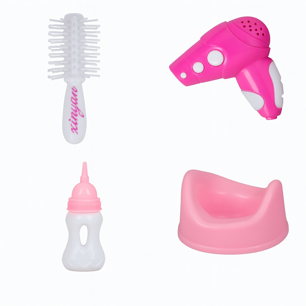 🍼 Incluye tetero, vacinilla, cepillo y secador de juguete.