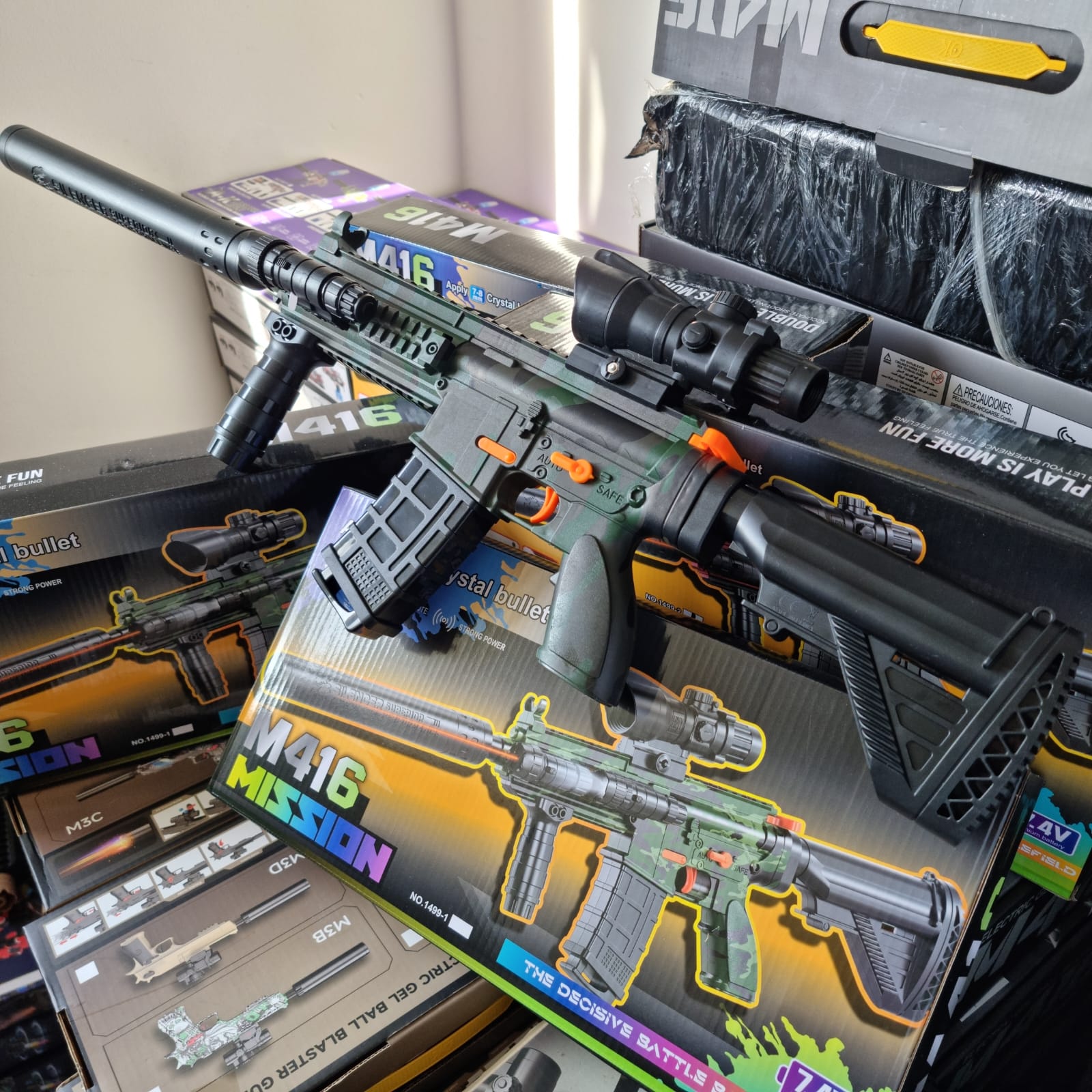 La M416 Mini es la versión más pequeña, liviana y manejable, perfecta para niños que quieren vivir la experiencia del hidrogel de forma segura, divertida y controlada.